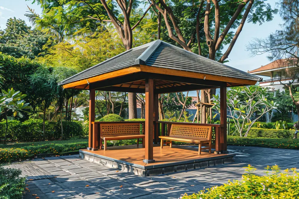 Elegant gazebos provide a covered outdoor retreat, perfect for relaxing, entertaining guests, or enjoying peaceful moments in your backyard.